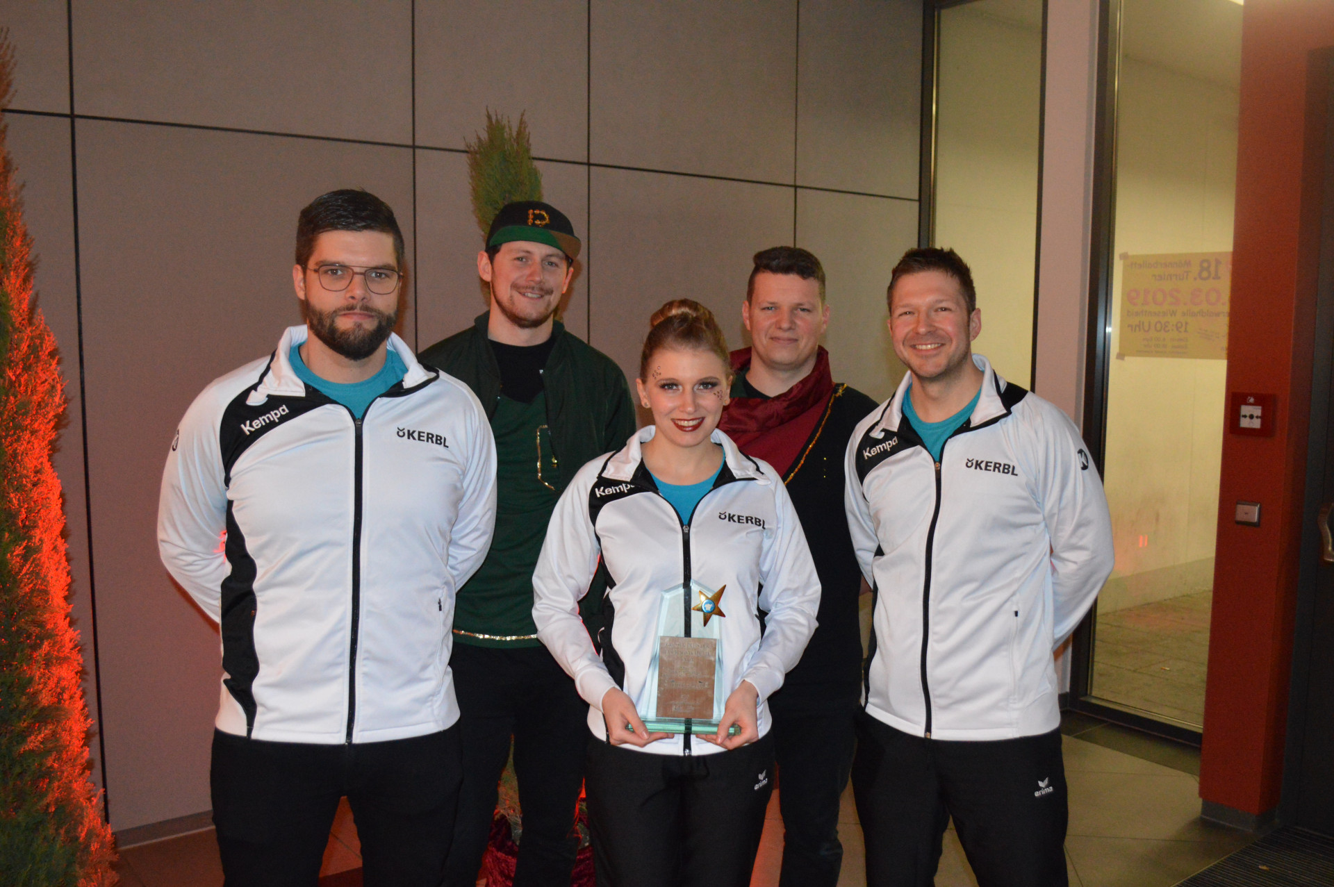 Diese hohen Herren waren also da, und Florian Wandinger nannte die Auszeichnung eine gewaltige Motivation für die Gruppe, die 1992 gegründet worden sei und nach dem überaus erfolgreichen Programm für 2018 heuer noch einmal „eine Schippe drauf gelegt“ habe. Das Programm „Romeo und Julia“ haben sie schon öfter gezeigt, einmal sogar in der Steigerwaldhalle in Wiesentheid vor 1000 ausschließlich weiblichen Gästen. In einem Teil der Show sind nur Männer auf der Bühne. Trainer Martin Mooshofer wusste wohl, was jetzt erwartet wird: „Männer, wir tanzen mit offenem Hemd.“ Die Wirkung war Wandinger zufolge sofort da. „Das ist Show! Und das ist auch der Grund, wieso man den Sport macht. Am Ende gab’s Standing Ovations.“