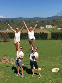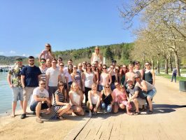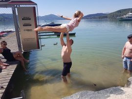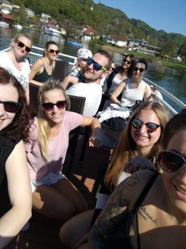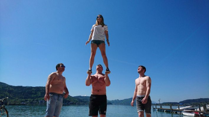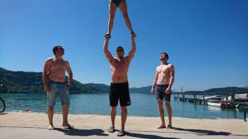 Während ein paar Members die Klagenfurter Cityarkaden unsicher machten, ließen es sich die Anderen bei einer gemütlichen Schifffahrt auf dem Wörthersee gut gehen. Für ein weiteres „Grüppchen“ wiederum ging es auf den Pyramidenkogel, welcher mit einer Höhe von 100m und einer 70m langen Rutsche eine absolute Sehenswürdigkeit darstellte.  Nachmittags traf sich dann alle auf deiner Wiese am Wörthersee. Man verbrachte schöne und lustige Stunden zusammen – wir spielten Volleyball und tobten uns mit Hebefiguren aus.