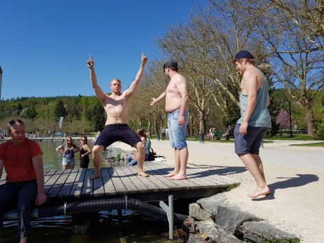 Am nächsten Morgen war JEDEM von uns klar: „Wir müssen raus!!!“ Bei knapp 30°C stand der Samstag zur freien Verfügung. Da wir tolles Wetter hatten, entschieden sich beispielsweise eine Gruppe, in der Innenstadt Frühstücken zu gehen. Man traf sich im Anschluss im nahegelegenen Wildpark, wo wir  ausgelassen die Tiergehege abgrasten, tanzten und Hebefiguren machten. – Stichwort: #WildparkohneTiere