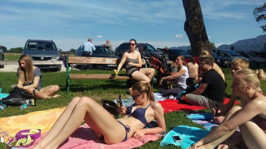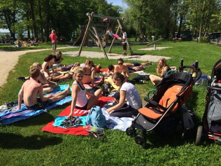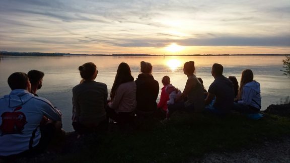Nach einer Schlussrunde mit den beiden Trainern von Parker Outdoor, bei dem der Tag nochmals Revue passiert und die wichtigsten Teamelemente diskutiert wurden, ging es in den gemütlichen Teil über. Bei herrlichem Wetter, kurzem Abkühlen im Chiemsee, Grillen und gemütlichem Beisammensein wurde der Tag traumhaft beendet. Der Sonnenuntergang am Übersee Strand war für viele die Krönung auf einen wunderbaren Tag.