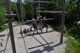 Zwei zertifizierte Sicherheitstrainer betreuten die Teilnehmer in der so genannten „TeamYacht“. Es galt, gemeinsam Aufgaben zu erledigen, zum Beispiel zu Dritt eine „Himmelsleiter“ zu erklimmen: Da die Balken unterschiedlich weit auseinander standen, war dies nur durch gegenseitige Hilfe möglich. Danach durften sich alle im Piratenschiff des Hochseilgartens austoben, anschließend ging es zum Baden und Entspannen an den Ammersee. Nach fast sechs Stunden Teambuilding bei über 30 Grad eine willkommene Abwechslung!